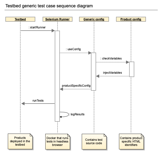 The testbed contains a general Selenium configuration that describes the generic test cases. The tests are using a standard flow, which expects a specific page sequence and defined HTML field identifiers (e.g. for username and password). The field identifiers are dynamic and can be replaced by including a products specific configuration file, which is provided by the product maintainer.