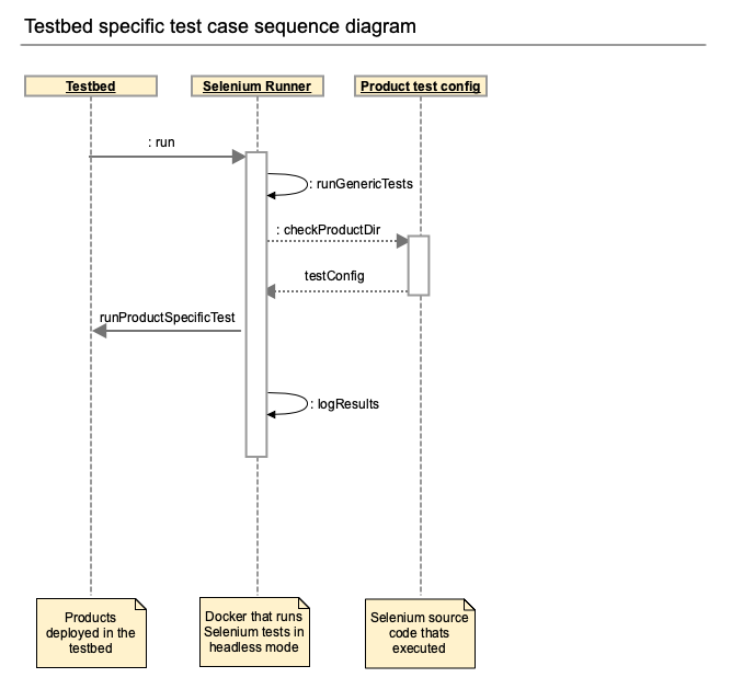 Each product may define its own test cases to test specific features. These test cases can be defined using the Behave/Selenium specification of the testbed and added to the product directory. They are then executed if the product is deployed in the testbed.