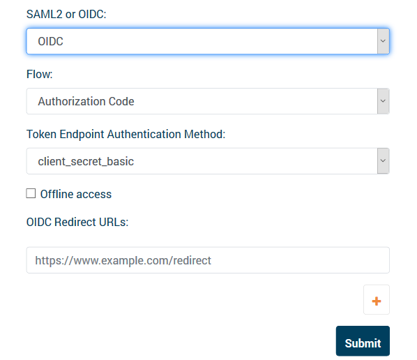 You can register services either using OpenID Connect or SAML2. Service requests are reviewed by the Support team. In order to start the process, open the Service Provider Registration form in your browser.