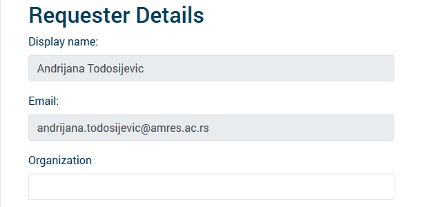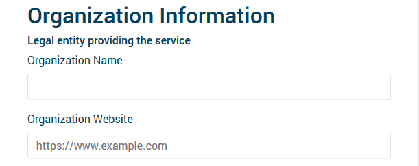 Orgnanization - If it is not prefilled, please enter the name of your organization. Note: This can be different from the organization / legal entity providing the service