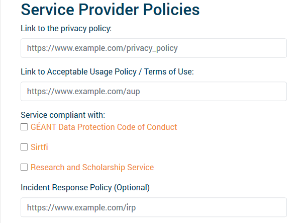 Sirtfi - Click the check box if the service is comliant with Sirtfi. You can find more information about the Sirtfi framework on the REFEDS website