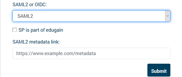 SAML2 Metadata (URL) - This textbox is only visible if you have NOT selected that the SP is part of eduGAIN. A URL pointing to the SAML2 metadata of the service