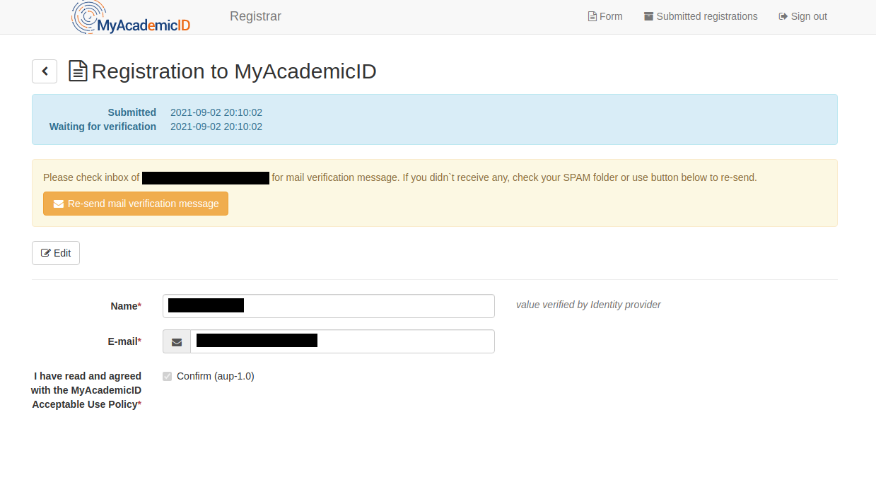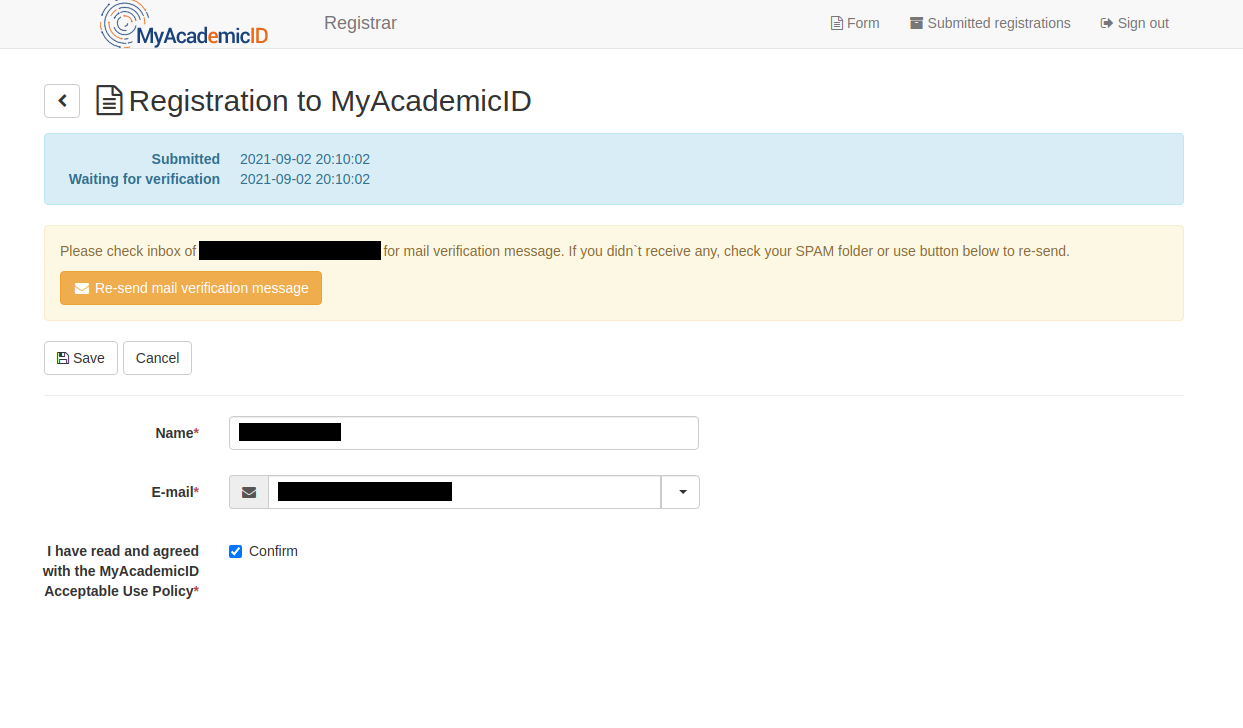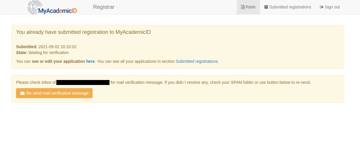 Sometimes, when a user has to register on the MyAcademicID platform, they might enter the wrong email address. Using an invalid email address during the registration process, prohibits the process to complete as the user is not able receive the email verification message. In this document, we describe how as user can correct the email address they entered during user registration.